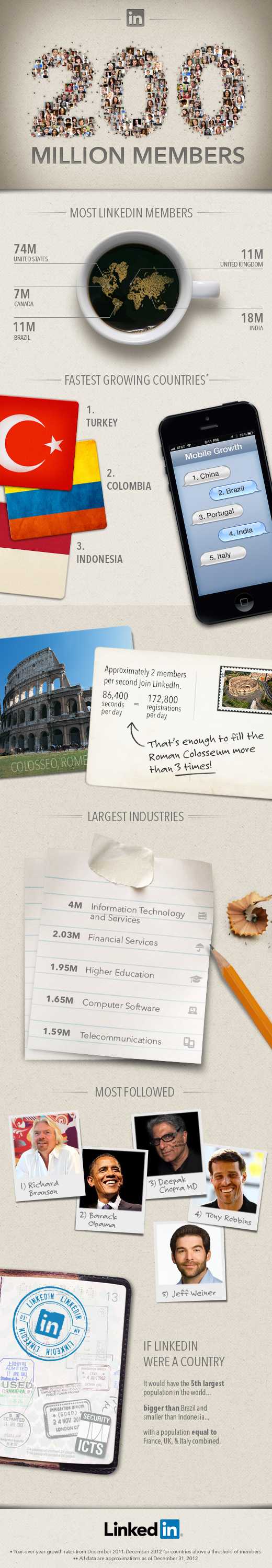 Linkedin a annoncé avoir a dépassé 200 millions d’utilisateurs à travers le monde en une dizaine d’années. Présent dans 200 pays et disponibles en 19 langues, Linkedin enregistrerait 2 nouveaux membres par seconde.